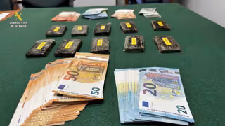 En el interior se intervinieron 3.720 euros en billetes de diverso valor, así como material destinado a la distribución del hachís, entre ellos herramientas de corte y básculas de precisión. El valor total de la sustancia estupefaciente incautada y retirada del mercado asciende a 3.450 euros. Las diligencias instruidas, junto con el detenido y los efectos intervenidos, han sido puestas a disposición de la autoridad judicial.