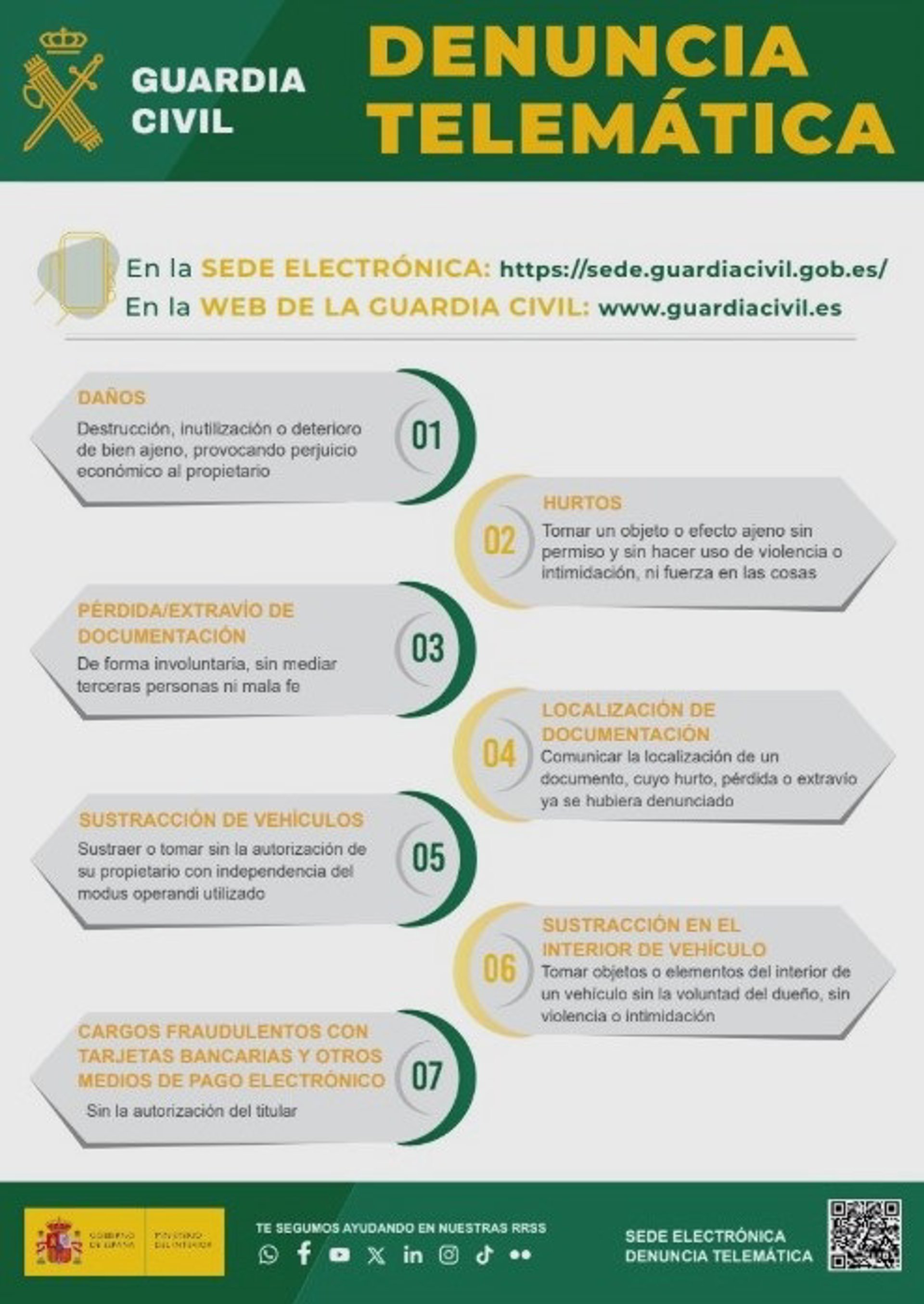 La Guardia Civil ha puesto en funcionamiento un nuevo canal de denuncia electrónica que permitirá a los ciudadanos presentar, de manera íntegra y sin necesidad de desplazamiento, denuncias en materia penal y administrativa.