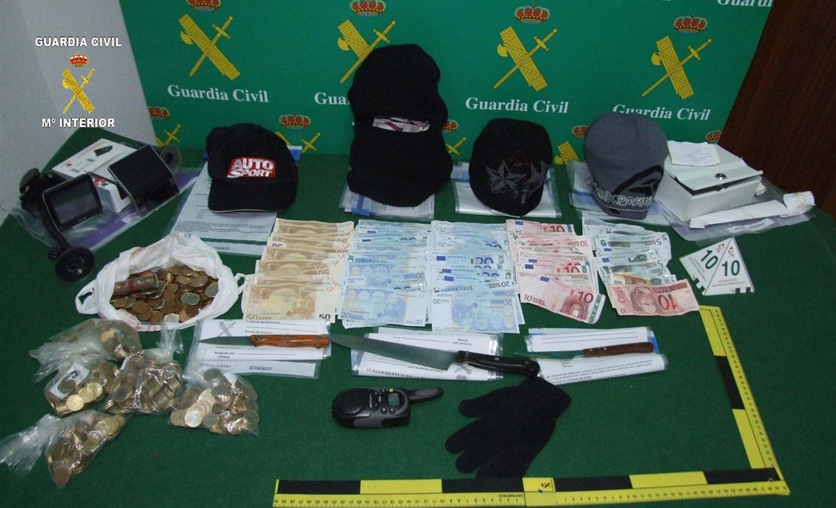 Los efectos intervenidos han sido un vehículo, 2695 euros en billetes, 289 euros en monedas, tres cuchillos, pasamontañas, gorros y guantes empleados en el atraco, un walkie-talki, tres Teléfonos móviles y un GPS.