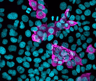 Células infectadas con SARS-CoV-2 en magenta. - JONATHAN Z. SEXTON