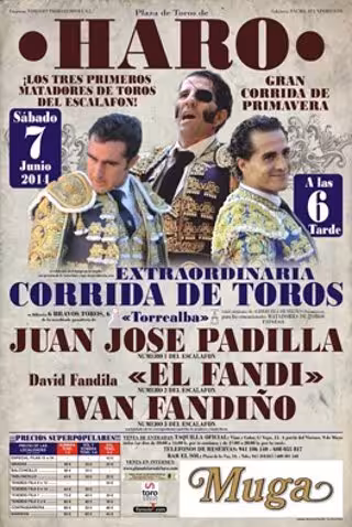 La plaza de toros de Haro acoge este sábado, a partir de las 18,00 horas, el festejo de Primavera, en la que actuarán los diestros Juan José Padilla, David Fandila 'El Fandi' e Iván Fandiño, con toros de 'Torrealba'.
