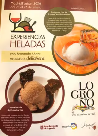 Dos helados de Fernando Sáenz Duarte y una tapa de la calle Laurel representarán a Logroño en 'Madrid Fusión 2016', el Congreso Internacional de Gastronomía, que se celebra del 25 al 27 de enero en la capital de España. Esta cita congrega desde 2003 a las más prestigiosas personalidades y destinos del mundo de la gastronomía.