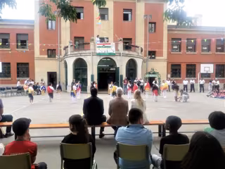 Pregón, bailes, Himno de Logroño o el Arco de San Bernabé. Han sido algunos de los elementos con los que los alumnos del Colegio Vuelo Madrid-Manila de la capital riojana han celebrado este mediodía las fiestas del patrón de la capital riojana, San Bernabé, que se celebran desde este jueves y hasta el próximo lunes 12.