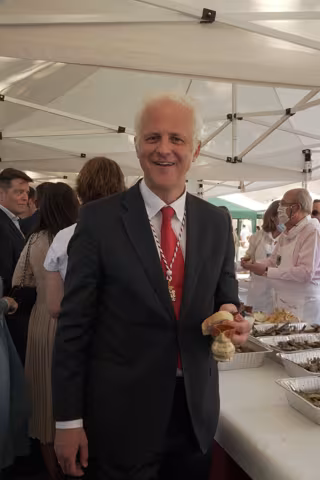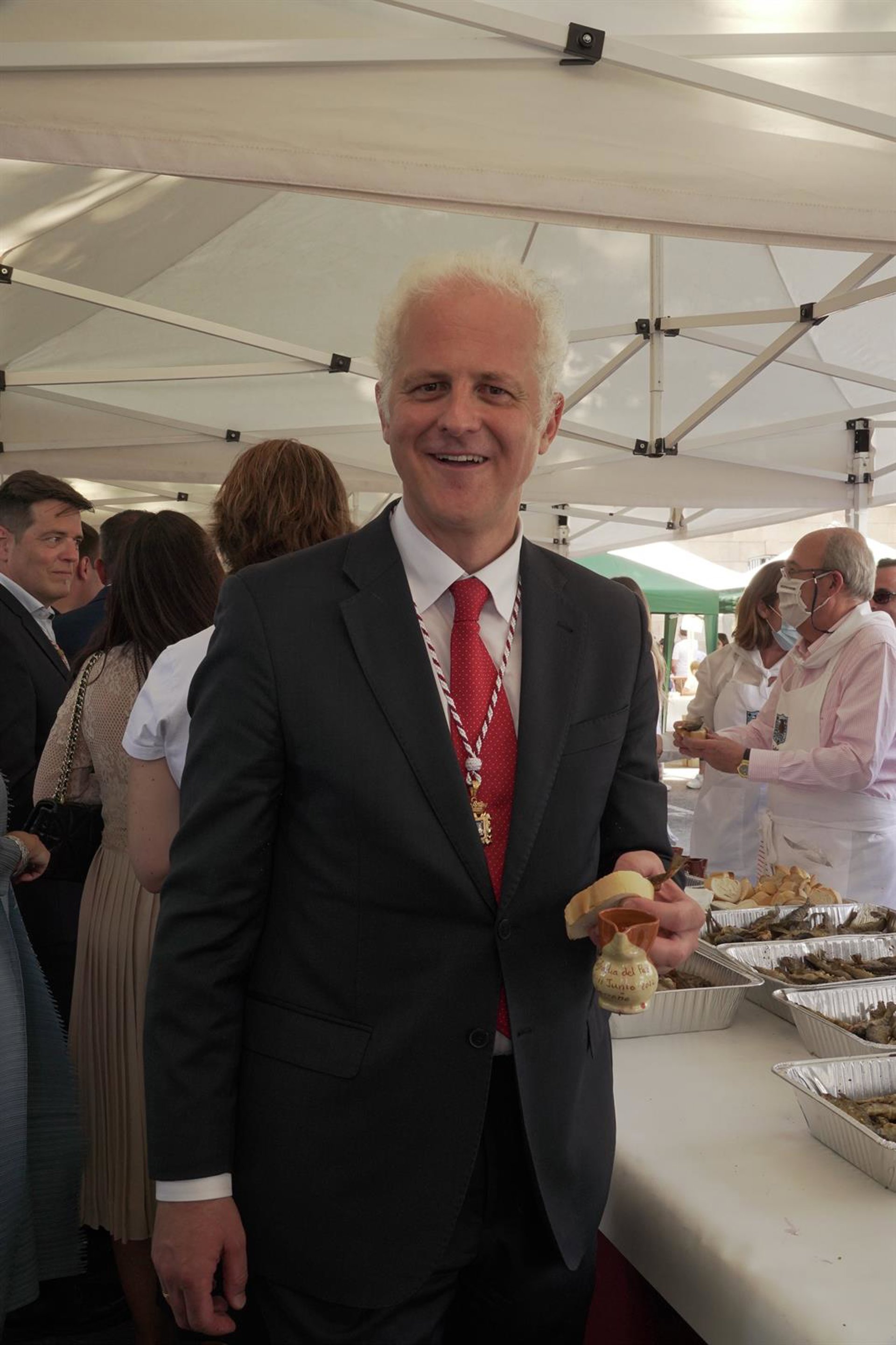 Archivo - El alcalde de Logroño, Pablo Hermoso de Mendoza, recoge el pan, pez y vino durante la procesión del patrón de Logroño, San Bernabé, a 11 de junio de 2022, en Logroño, La Rioja (España). - Alberto Ruiz - Europa Press - Archivo