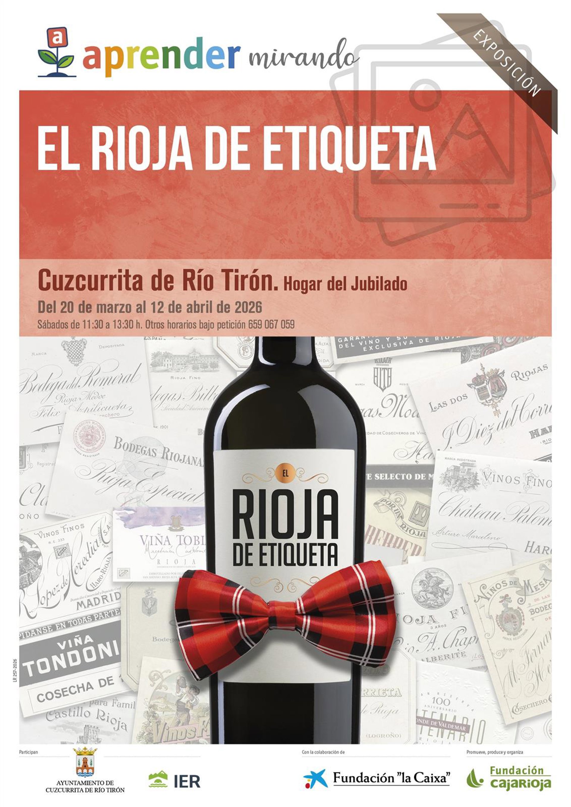 El Hogar del Jubilado de Cuzcurrita de Río Tirón acoge la exposición 'El Rioja de etiqueta', incluida en el programa 'Aprender', que impulsan Fundación Caja Rioja y Fundación La Caixa. La exposición puede visitarse hasta el 12 de abril los sábados, de 11:30 a 13:30 horas.