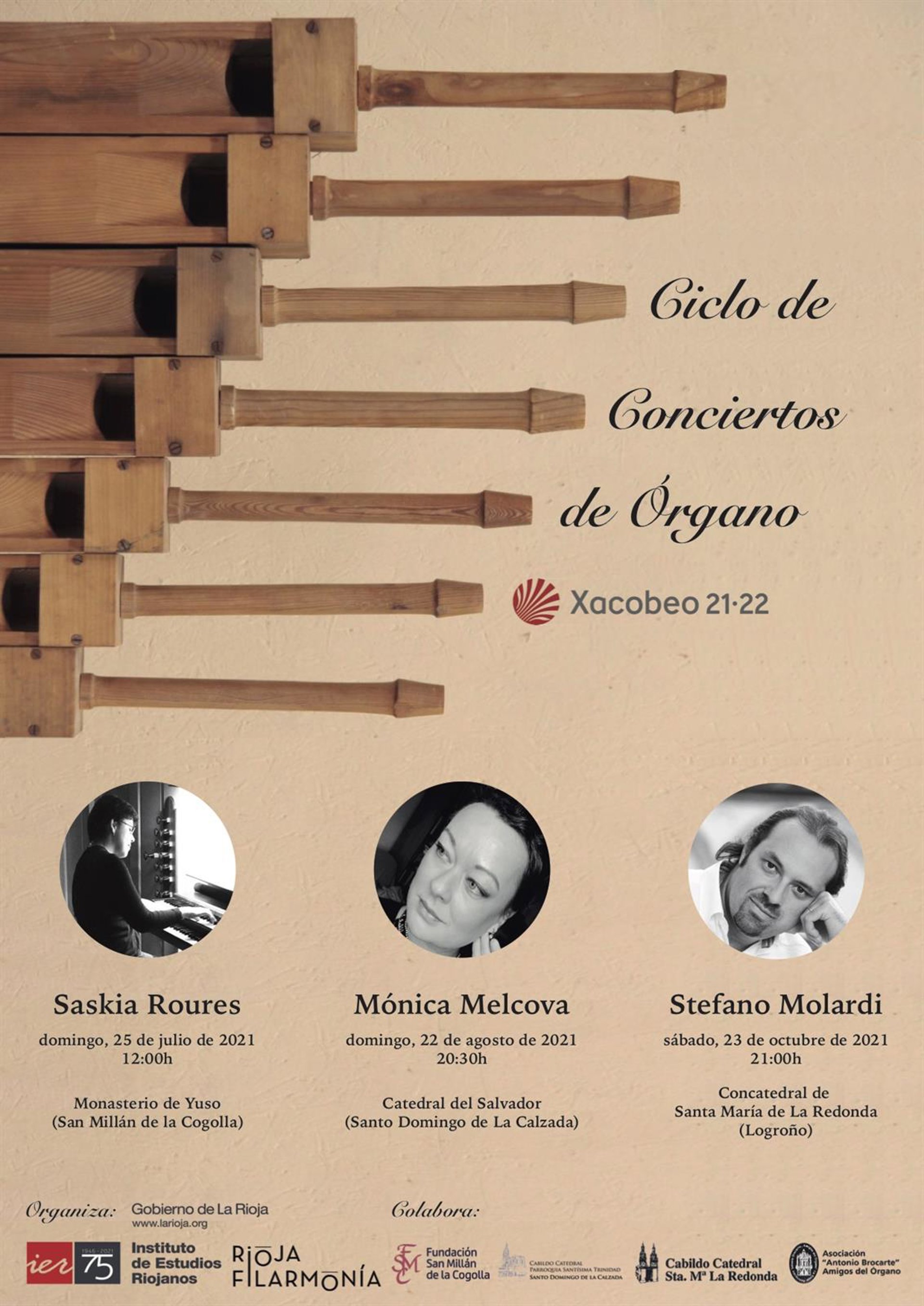 El Instituto de Estudios Riojanos (IER), en colaboración con la entidad musical y cultural Rioja Filarmonía, ha organizado un Ciclo de Conciertos de Órgano con motivo del Año Santo Xacobeo, cuya celebración se alargará excepcionalmente hasta el año 2022 debido a la pandemia mundial por la COVID-19.