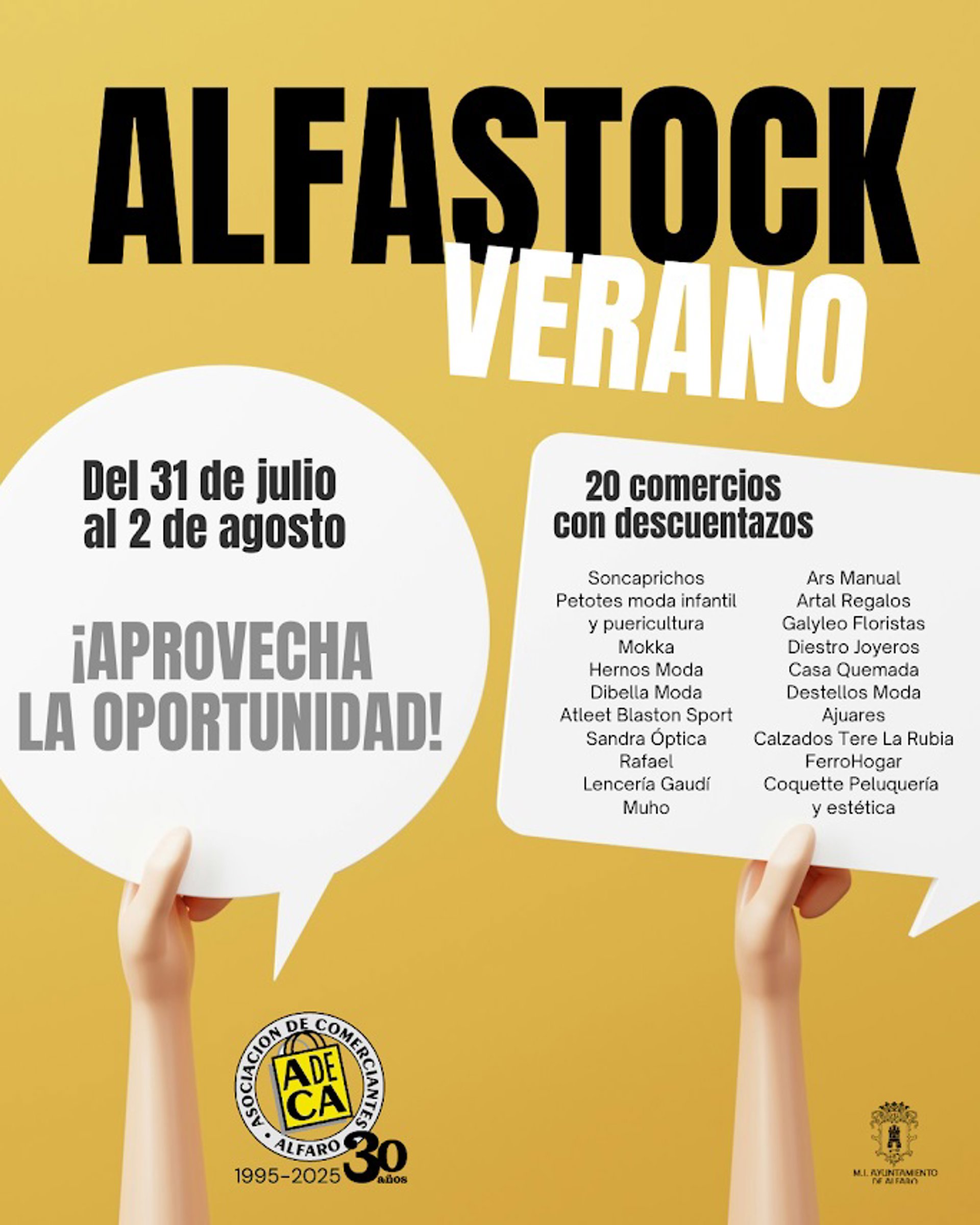 Este jueves, 31 de julio, llega la II edición del 'Alfastock de verano', de la mano de la Asociación de Comerciantes de Alfaro (Adeca). Un evento destacado en la localidad en la que muchas tiendas sacan a las calles sus mejores descuentos para aprovechar las oportunidades. La actividad proseguirá los días 1 y 2 de agosto.