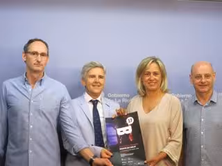 El director general de Cultura y Turismo, Eduardo Rodríguez Osés, ha presentado esta mañana una nueva edición de 'Badarán que hablar' acompañado del director artístico del certamen, Pedro García Marzo, la codirectora de este, Sara Arambarri Olarte, y el alcalde de Badarán, Francisco Javier Ibáñez Rodríguez.