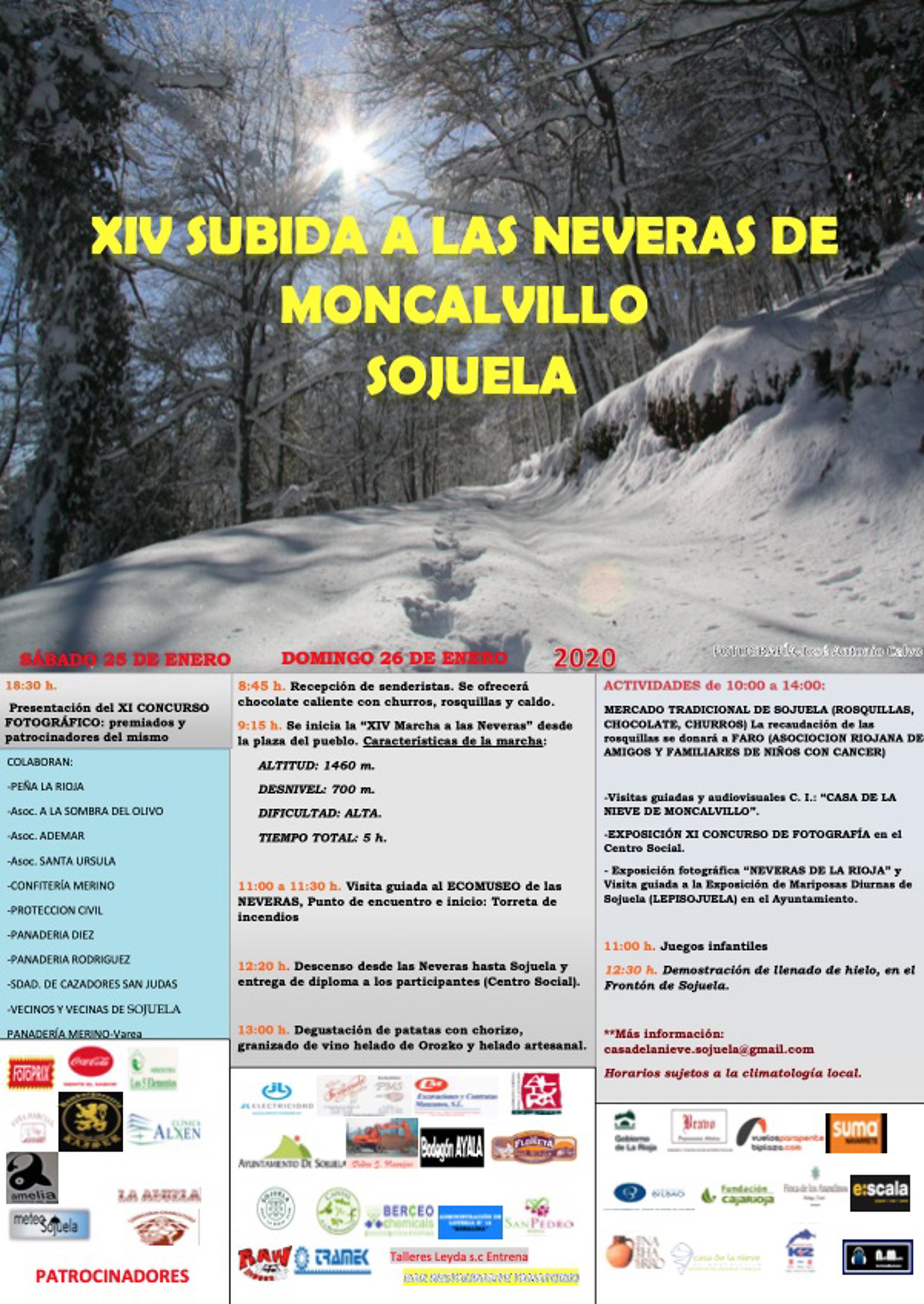 El dinamizador de la Casa de la Nieve, José Quintana, ha añadido que hay un programa de actividades para quien no quiera subir a las cinco neveras recuperadas que existen, con mercadillo, exposiciones, visitas a la Casa de la Nieve, juegos infantiles y una demostración, a las 12:30 horas en el Frontón de Sojuela, del llenado con hielo de las neveras.