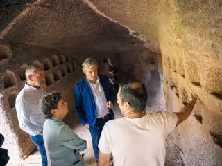 Durante su visita hoy, 11 de septiembre, al conjunto rupestre y acompañado por la directora general de Turismo y Promoción Territorial, Virginia Borges, el consejero ha conocido el estado actual del grupo de cuevas, conocidas como 'scriptorium rupestre', en las que se contempla acometer hasta cuatro actuaciones: "la consolidación del scriptorium, la mejora de la accesibilidad al monumento, el desarrollo de la museografía y el diseño de diferentes productos de dinamización turística".