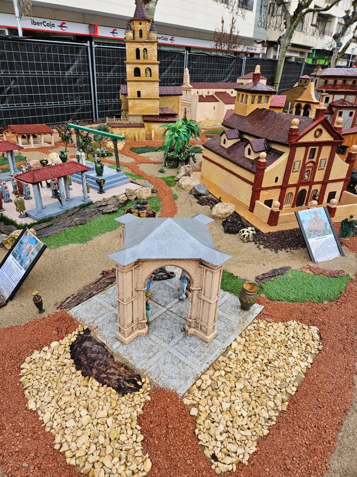 En el otro lado del conjunto se encuentran figuras y pasajes tradicionales que componen cualquier Belén como el Nacimiento, la anunciación a los pastores, la adoración de los Reyes Magos, y edificios característicos de la época romana como el circo y el coliseo. Este Belén puede visitarse en el paseo del Mercadal del 5 de diciembre de 2025 al 6 de enero de 2026.