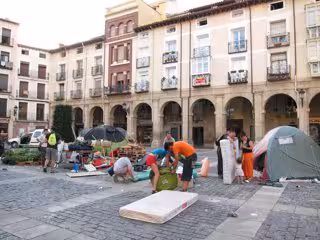 En Logroño, el movimiento de los 'indignados' realizó su primera concentración en la plaza del Mercado el 18 de mayo, instalando a continuación el campamento que han mantenido hasta esta tarde.
