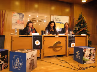 En la presentación también ha participado la presidenta de la asociación juvenil Inter Europa, Alba Moreno y la directora del Centro Cultural Ibercaja, Mayte Ciriza.