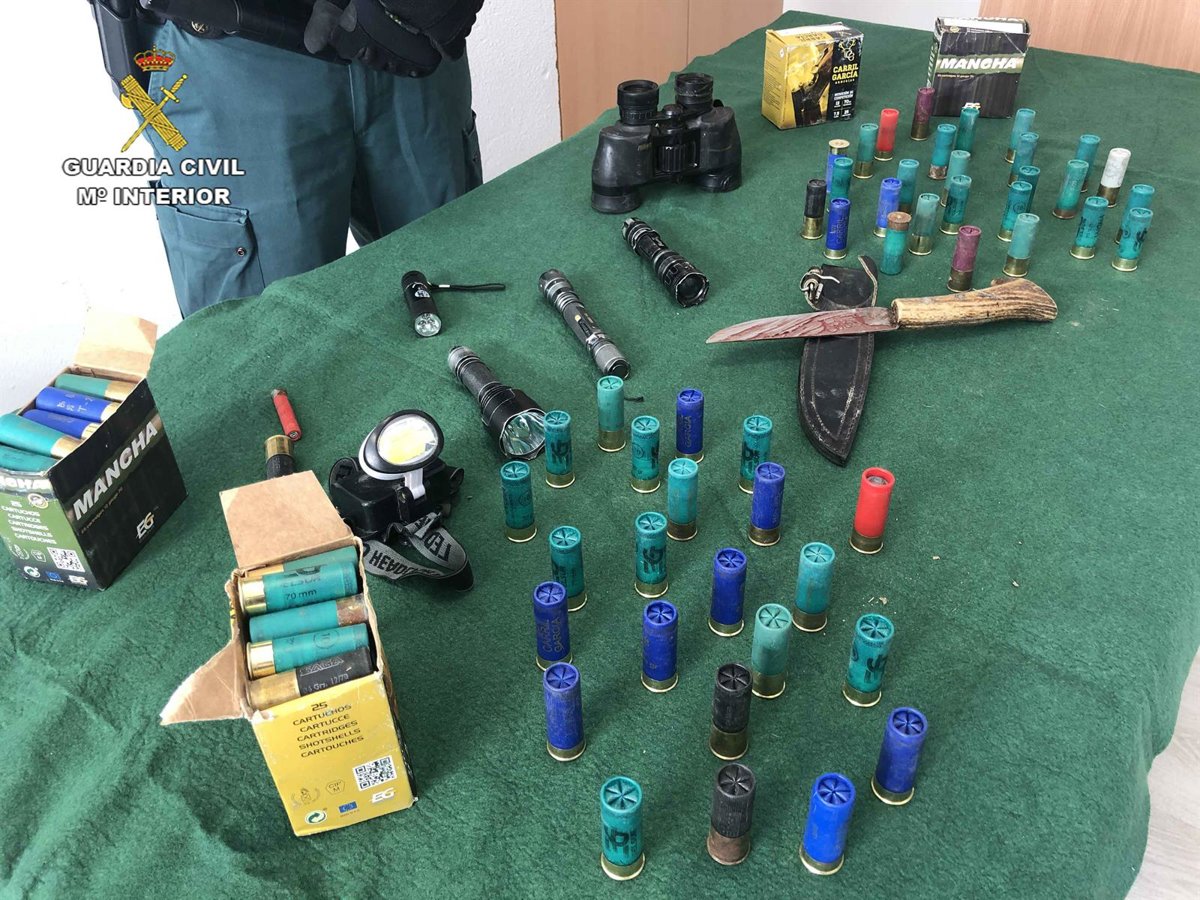 En el citado lugar Agentes de la Unidad Funcional de Patrullas (U.F.P.) procedieron a interceptar una pickup marca Ford Rranger. Durante el proceso de identificación de su conductor los agentes pudieron constatar su historial por la tenencia y porte de armas blancas, lo que motivo el registro del vehículo, hallándose en su interior dos palomas muertas, un cuchillo ensangrentado, 100 cartuchos del calibre 12, ropa de camuflaje, cuatro linternas, un frontal, mantas, cuerdas y sacos.