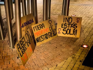 Pancartas durante la concentración en protesta por la violación en Albelda - José Sánchez - Europa Press