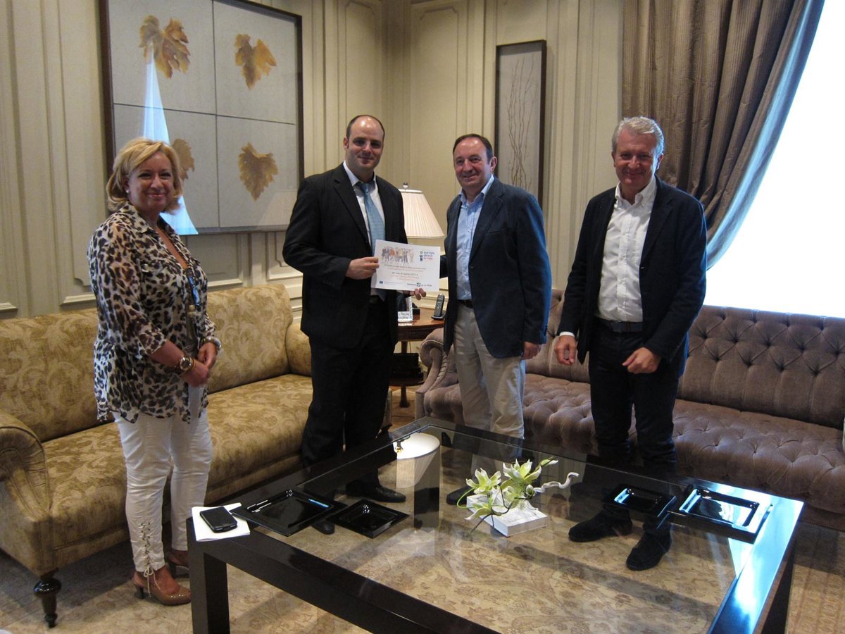 El presidente del Gobierno de La Rioja, Pedro Sanz, ha hecho entrega esta mañana del galardón 'Ciudadano Riojano Europeo' del mes de agosto que, en esta ocasión, ha querido reconocer el trabajo que desarrolla InTERquímica-Instituto de Tecnologías Químicas Emergentes de la Rioja por su colaboración en proyectos europeos y, en concreto, por los resultados obtenidos con el denominado 'Metnano'. El investigador de Interquímica Javier Pérez Martínez ha recogido la distinción.