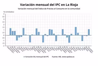 La Rioja, en este caso, con un incremento interanual que se mantiene en el 0,4 por ciento, se coloca por encima del 0,1 por ciento de aumento medio a nivel nacional.
