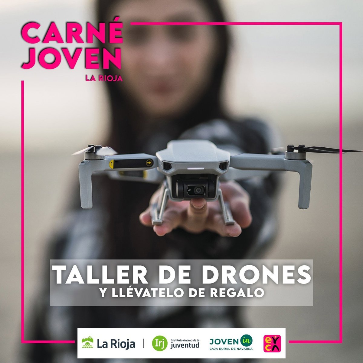 Dirigido a jóvenes de entre 14 y 18 años que cuenten con el Carné Joven, a lo largo del taller gratuito los participantes podrán conocer el funcionamiento de un dron, se les enseñará a montarlo y a manejarlo para que posteriormente se lo puedan llevar a casa.