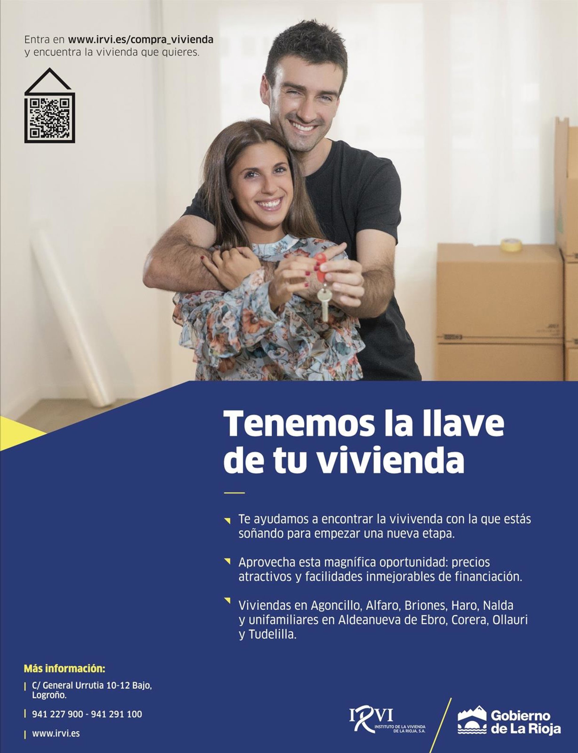 El Instituto de la Vivienda de La Rioja (IRVI) favorece el acceso a la vivienda con la venta de pisos y unifamiliares con notables descuentos y en unas condiciones ventajosas de financiación gracias al programa de Hipoteca Joven del Gobierno de La Rioja y la nueva ayuda a los jóvenes para la compra en municipios de menos de 5.000 habitantes.