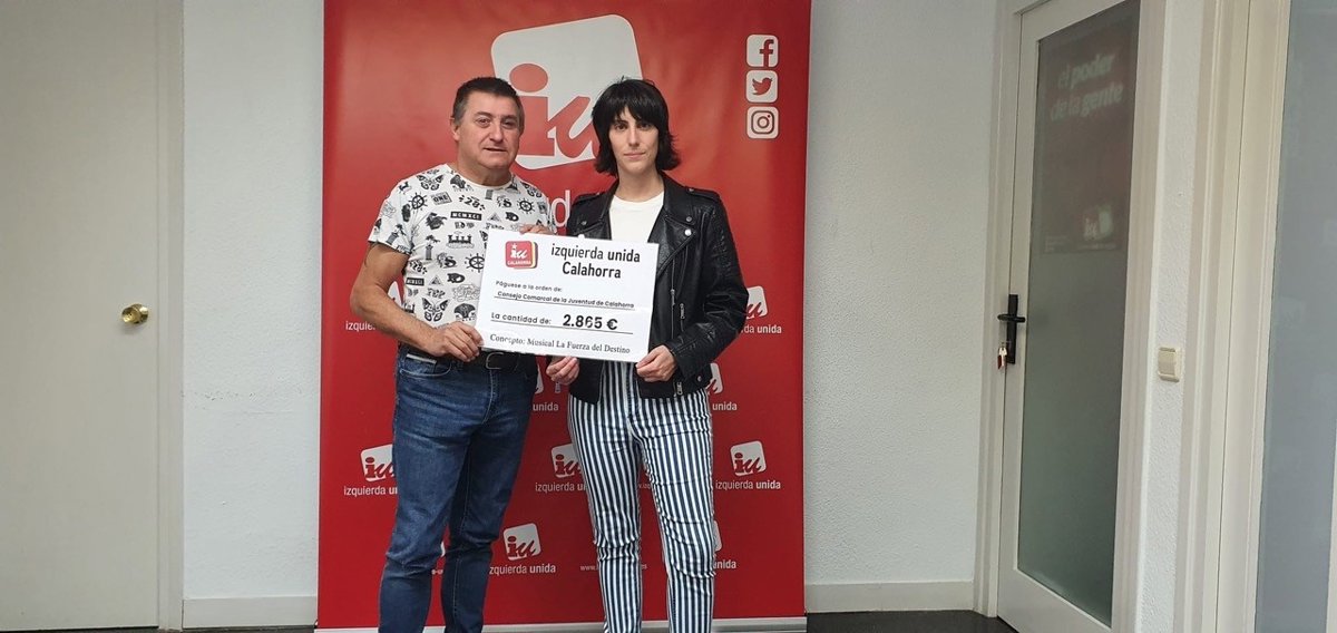 IU Calahorra, a través de su concejal en el Ayuntamiento, J. Oscar Moreno, ha hecho entrega a la presidenta del Consejo de la Juventud Comarcal de Calahorra, Carolina Celorrio, de un cheque por valor de 2.865 euros, cantidad obtenida de los beneficios del musical 'La fuerza del destino' que se celebró el pasado 24 de septiembre en el Teatro Ideal.