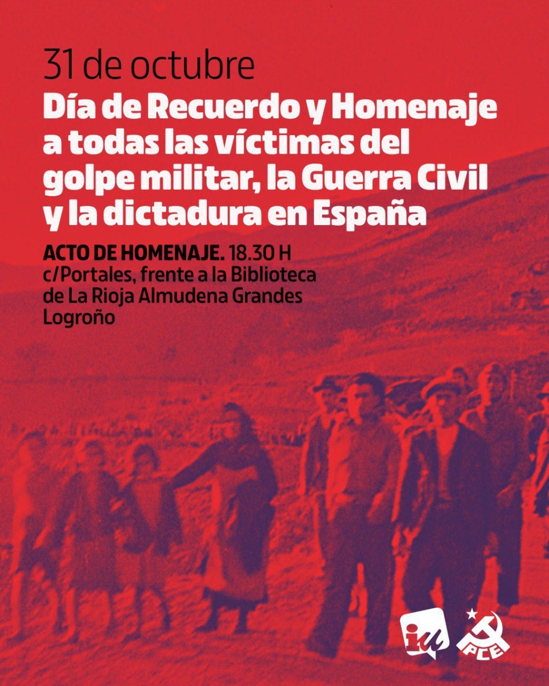 De este modo, en el Gobierno de La Rioja "pasan de puntillas sobre ese día de reconocimiento" y, ante las preguntas en el Parlamento de Izquierda Unida, "no sabe ni cómo se llama el día, que es el Día de Reconocimiento a las Víctimas del Franquismo y se empeñan en seguirle llamando el Día de la Memoria".