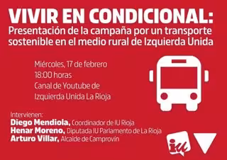 El coordinador de IU Rioja, Diego Mendiola; y el alcalde de Camprovín, Arturo Villar han ofrecido una rueda de prensa previa a la campaña de transporte rural sostenible de La Rioja, que se centrará en la exhibición, a las 18:00 horas de hoy, del video 'Vivir en condicional'.