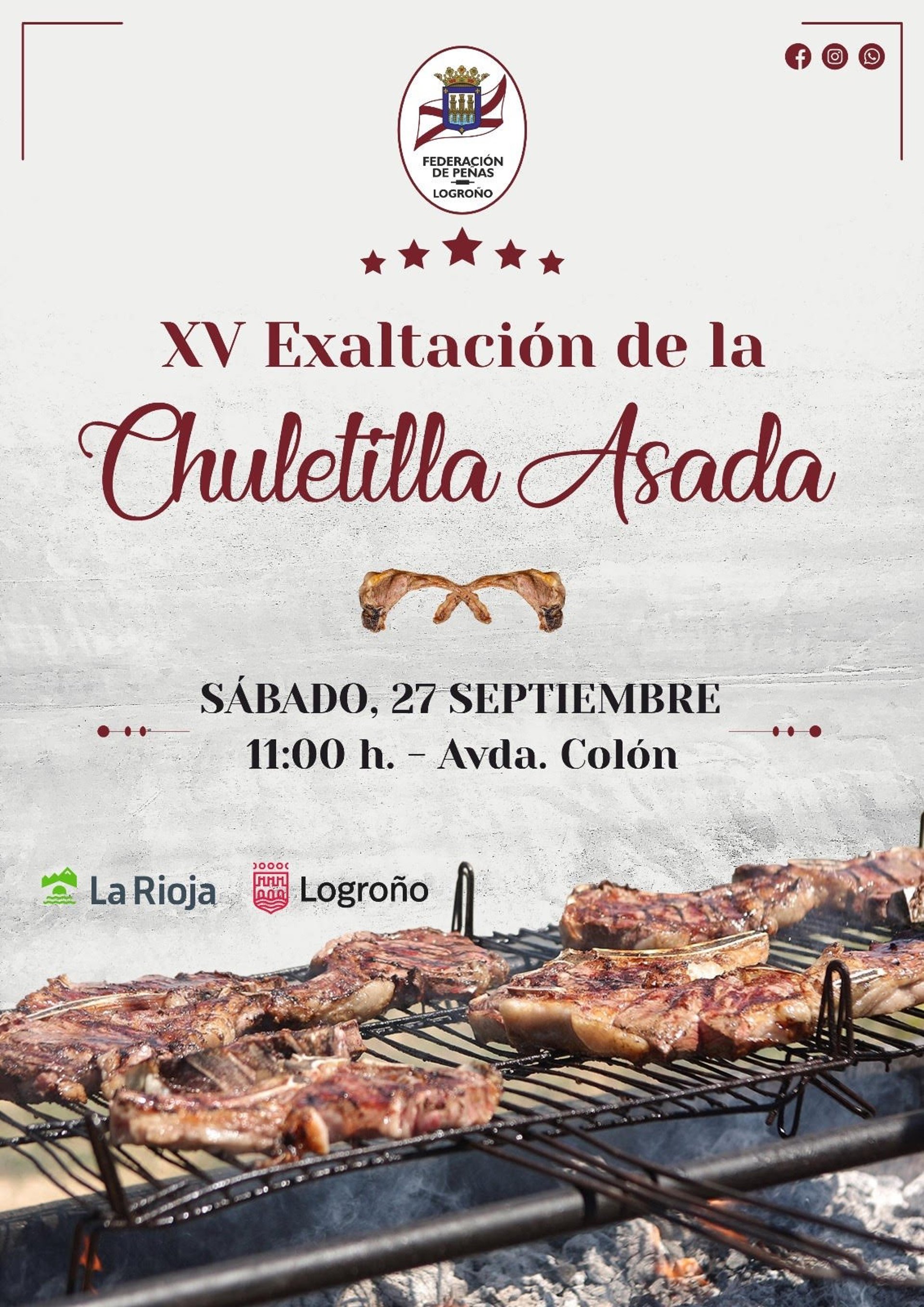 Este jueves, 11 de septiembre, saldrán a la venta -de forma online- las inscripciones para adquirir una mesa y participar en la la XV exaltación de la Chuletilla asada. El acto se celebrará como es habitual en la tradicional Avd. De Colón de Logroño poniendo broche a las fiestas de San Mateo.