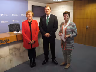 La consejera de Desarrollo Económico e Innovación, Leonor González Menorca, acompañada por el delegado del Gobierno en La Rioja, Alberto Bretón, y la coordinadora de la Fundación San Millán, Almudena Martínez, han presentado esta mañana un laboratorio de expertos sobre la Convención de Faro, un Faro-Lab, que se celebrará en San Millán de la Cogolla y Nájera los días 17 y 18 de mayo respectivamente y que comenzará mañana en Bilbao.