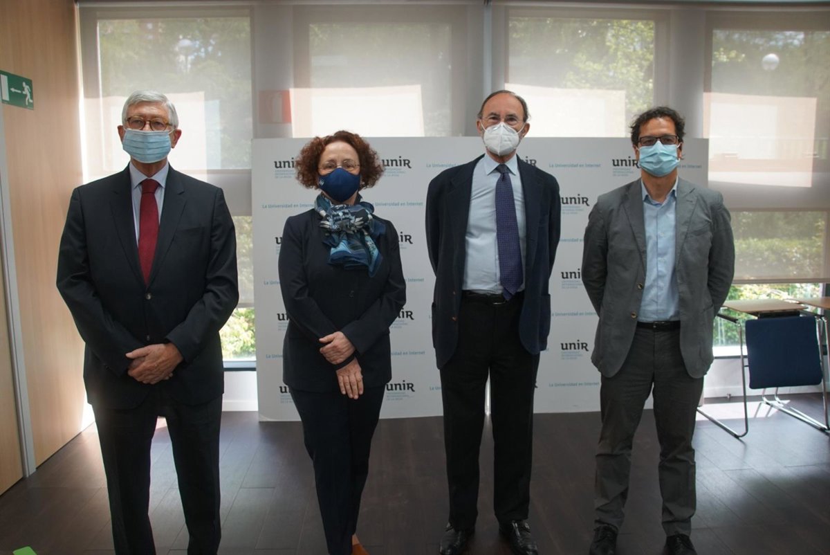 Presidente de UNIR, Rafael Puyol, la exministra de Asuntos Exteriores, Ana Palacio, el catedrático emérito de Sociología, Emilio Lamo de Espinosa y el profesor de Ciencia Política, José Ignacio Torreblanca, participan en Seminario UNIR - UNIR