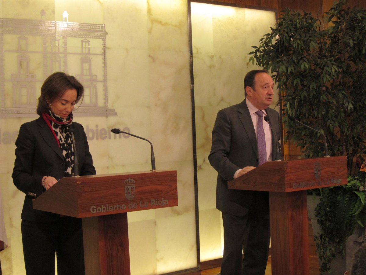 El presidente del Gobierno de La Rioja, Pedro Sanz, y la alcaldesa de Logroño, Cuca Gamarra, han comparecido este jueves la Ley, que, como ha recordado Sanz, "es un compromiso que adquirimos desde un principio, y que ahora es posible gracias a la esperada reforma de la Ley de Bases de Régimen Local".