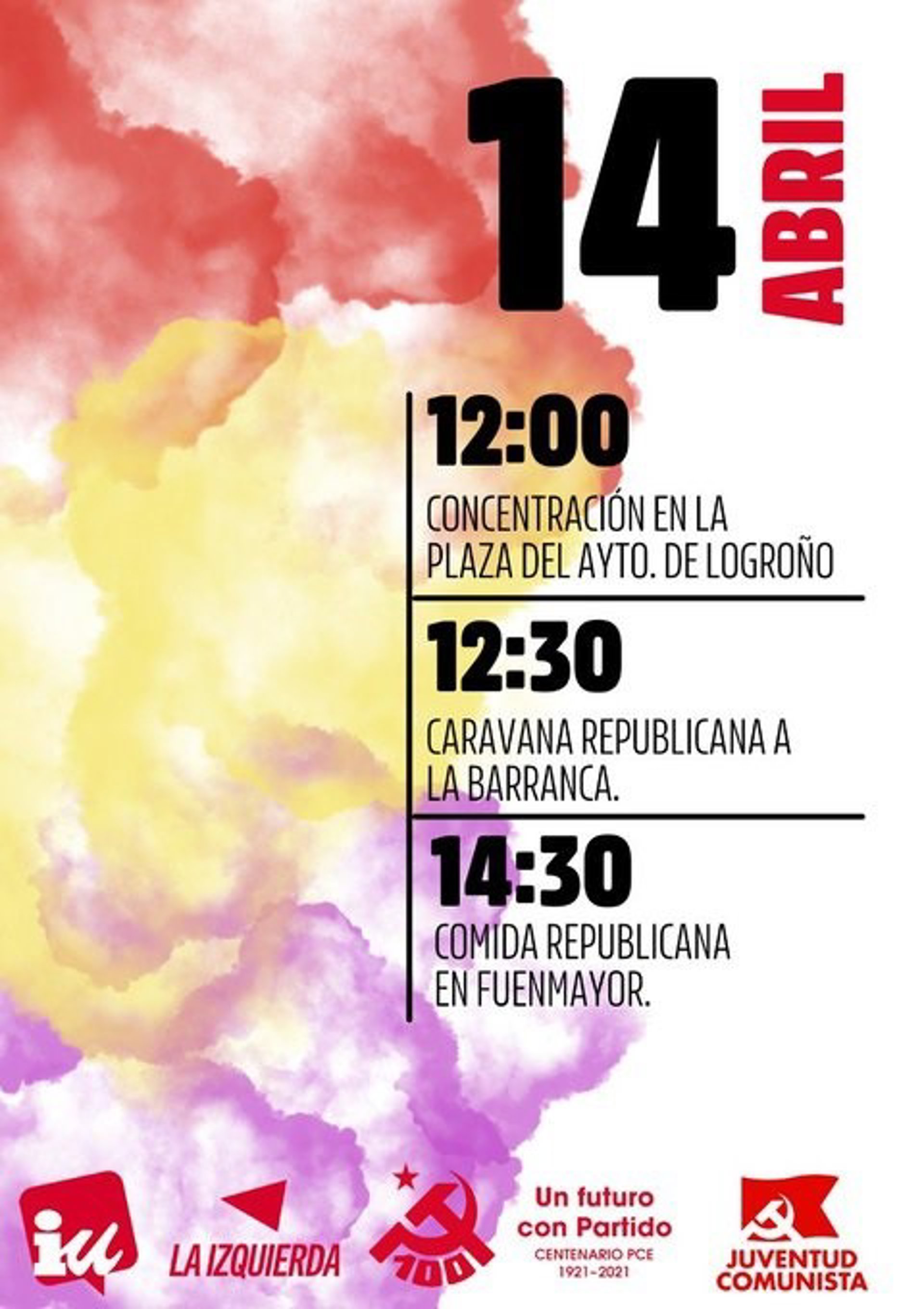Bajo ese prisma, se desarrollará una concentración, a las 12:00 horas, en la Plaza del Ayuntamiento, seguida de una caravana republicana a La Barranca que culminará con una comida republicana en Fuenmayor.