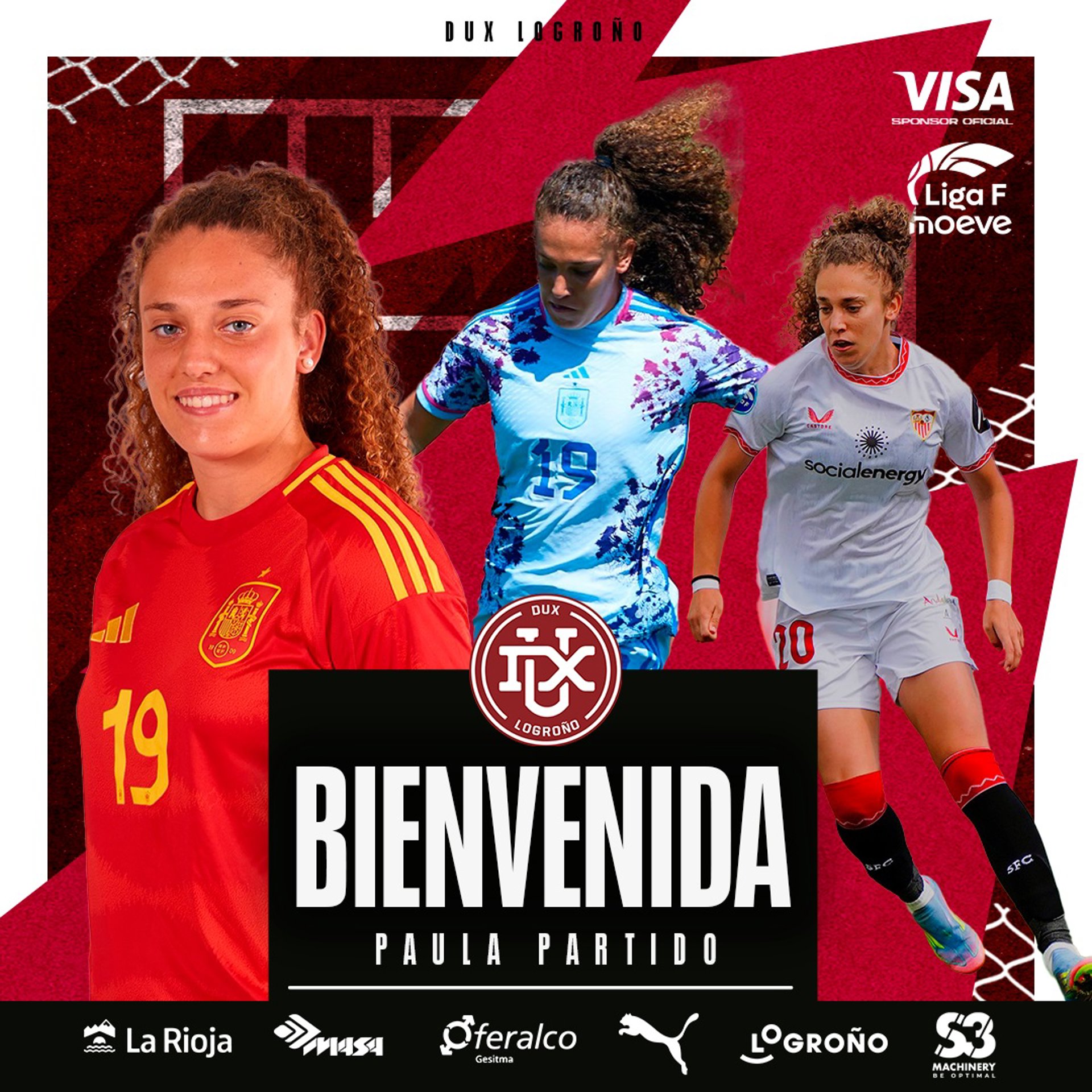 Desde el Dux Logroño "queremos darle la bienvenida a Paula Partido tanto al club, como al equipo, la ciudad y a toda La Rioja, convencidos de que su enorme futuro en el fútbol traiga renovadas ilusiones deportivas para el DUX Logroño y nos ayude a seguir creciendo en la búsqueda de la consolidación del equipo dentro de la Primera División LigaF". La madrileña se pone ya de inmediato a las órdenes del técnico del primer equipo, Héctor Blanco, acoplándose a los entrenamientos y partidos de pretemporada que ya están realizando las vinotinto.