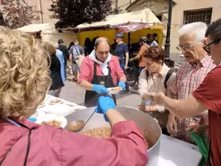 Los logroñeses, como cada 12 de junio, y desafiando en esta jornada al intenso sol y calor que han reinado en la ciudad, y tras esperar una larga fila, han cumplido desde este mediodía con el Voto a San Bernabé, con la degustación del toro guisado, del que se han repartido en torno a un millar de raciones.
