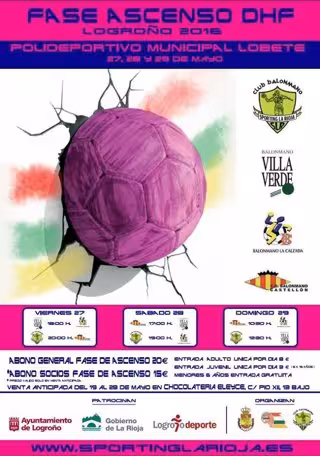 Logroño acogerá la fase final de ascenso a División de Honor del Balonmano Femenino, que se disputará del 27 al 29 de mayo en el Polideportivo Municipal de Lobete. Esta fase final la disputarán el Sporting La Rioja, junto con los clubes Balonmano Villaverde, Balonmano La Calzada y CD Balonmano Castellón.