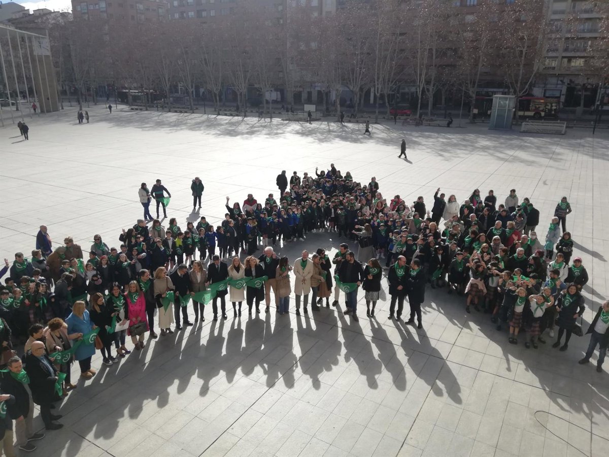 Un acto, organizado por la Asociación contra el Cáncer de La Rioja, en el que se han enarbolado pañuelos verdes para construir un gran lazo en la Plaza, y en el que han participado, entre otros, el presidente del Gobierno regional, Gonzalo Capellán; la presidenta del Parlamento riojano, Marta Fernández Cornago; la delegada del Gobierno en la comunidad, Beatriz Arraiz; y el alcalde logroñés, Conrado Escobar.