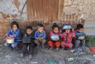 Archivo - Niños palestinos esperan para recibir comidas benéficas en el barrio de Al Zaitún, en el este de la ciudad de Gaza. - RIZEK ABDELJAWAD / XINHUA NEWS / CONTACTOPHOTO