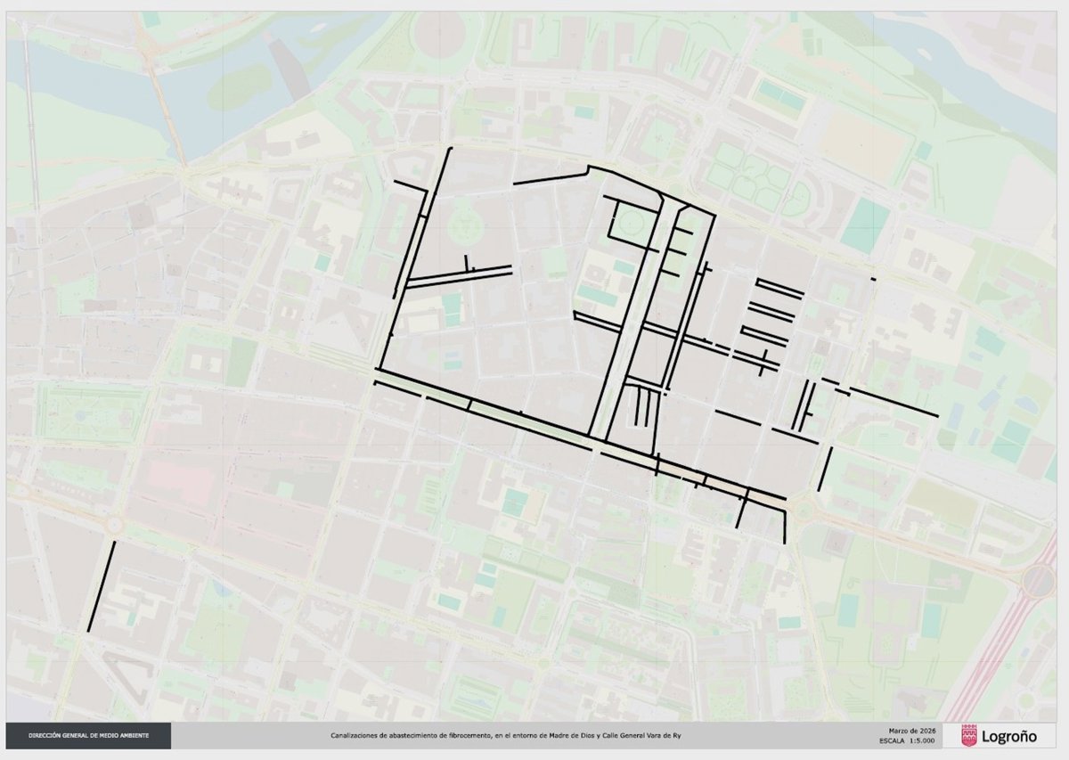 El Ayuntamiento de Logroño destinará un total de 1,6 millones de euros hasta el año 2029 en un plan de actuación para sustituir las tuberías de fibrocemento en más de una veintena de calles, situadas en los barrios de San José y Madre de Dios, además de en Avenida de la Paz y Vara de Rey, algunas de las vías que más problemas soportan.