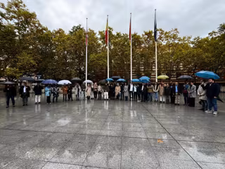 La ciudad de Logroño ha respondido hoy a la convocatoria de la Federación de Municipios y Provincias y se ha concentrado, en la Plaza del Ayuntamiento, para mostrar sus condolencias y solidaridad a las comunidades afectadas por la DANA con un minuto de silencio.