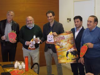 El concejal de Festejos, Miguel Sáinz, acompañado por los representantes de la Cofradía de San Bernabé Elías del Río, Juan Bernabé y Emilio Carreras y el torero aragonés Imanol Sánchez, ha presentado los actos que tendrán lugar durante las próximas fiestas con motivo del Voto de San Bernabé.