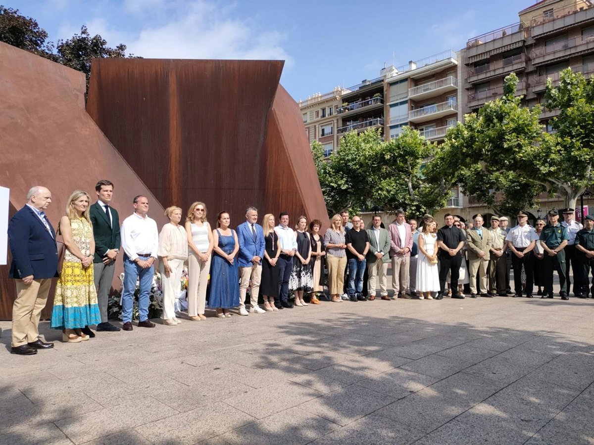 El tradicional homenaje, organizado por el Ayuntamiento de Logroño, ha tenido lugar en el monumento en Memoria de las Víctimas de ETA. Al mismo han acudido numerosas autoridades regionales y locales como la presidenta del Parlamento, Marta Fernández, la delegada del Gobierno en La Rioja, Beatriz Arraiz, el alcalde de Logroño, Conrado Escobar, la consejera de Salud y Políticas Sociales, María Martín, y los expresidentes regionales, Pedro Sanz y José Ignacio Pérez. Además, ha acudido, la vicesecretaría de Regeneración Institucional del PP, Cuca Gamarra.