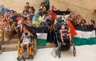 El vestíbulo del Ayuntamiento de Logroño ha recibido a las 38 niñas y niños saharauis, de entre 7 y 12 años, que han sido acogidos por varias familias riojanas a través del programa 'Vacaciones en paz'.