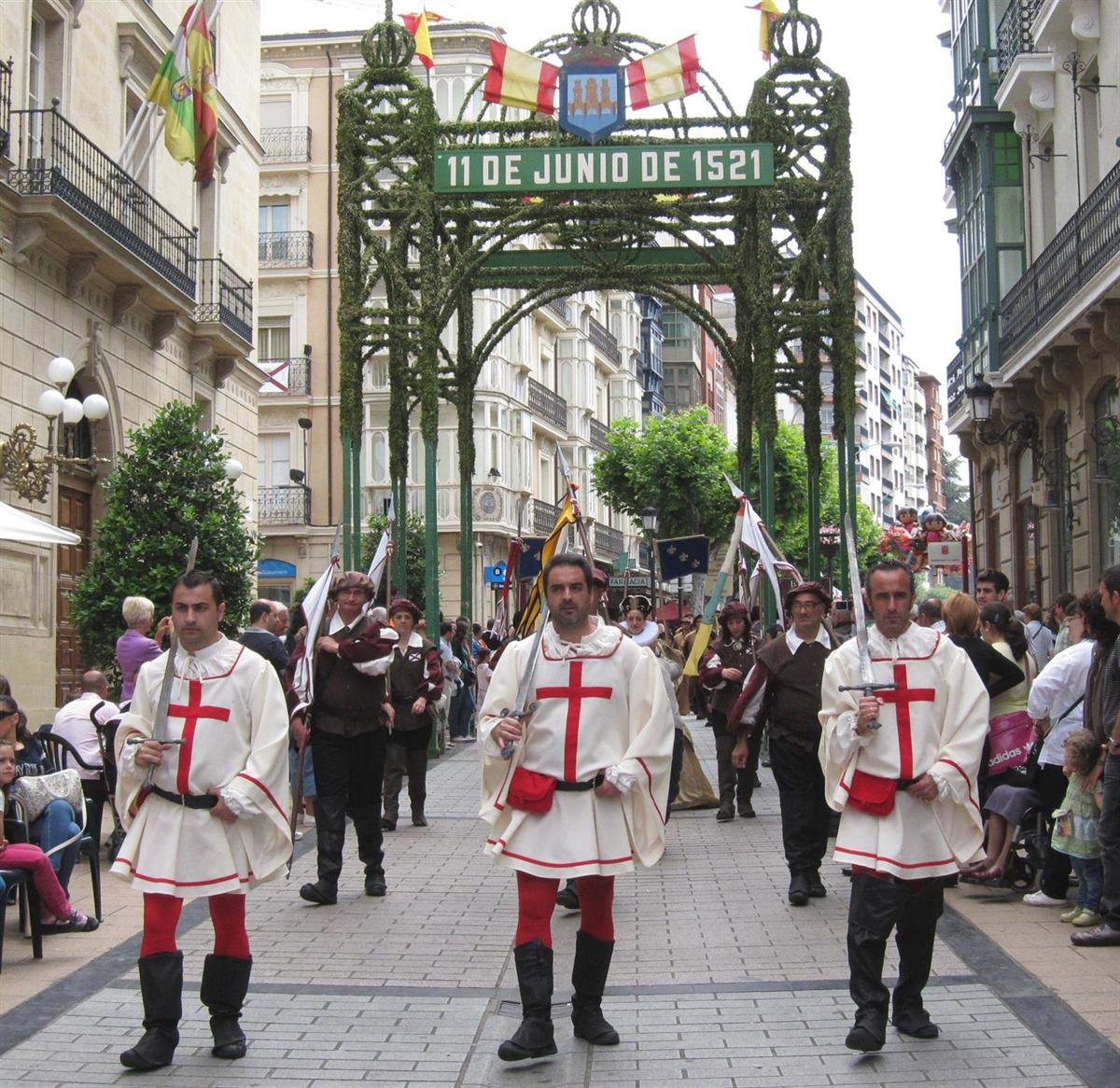 El recorrido, que ha estado amenizado por tambores y dulzainas, estaba encabezado por los voluntarios de Logroño. Así, en primer lugar, un figurante -que representaba a Carlos I, Rey de España en 1521- encabezaba el desfile, junto con las tropas de la ciudad y el pueblo caracterizado con trajes de la época que realizaban cánticos típicos y un grupo de niños vestidos de riojanos y riojanas.