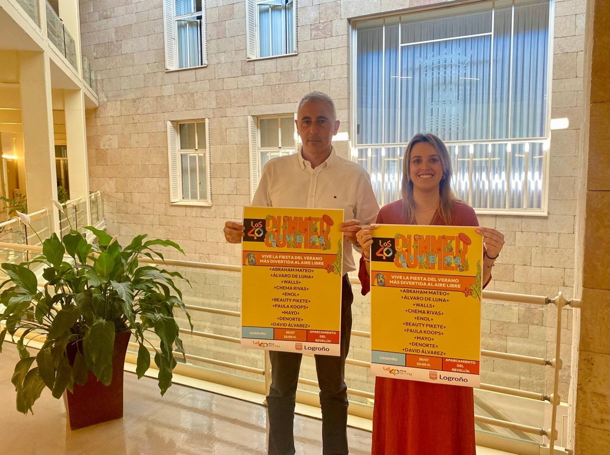 Por segundo año consecutivo, Logroño acogerá una de las citas más esperadas del verano: 'Los40 Summer Live', el mayor tour musical gratuito de España, que reúne a grandes artistas del momento en un solo escenario. El evento, presentado esta mañana por la concejala de Festejos, Laura Lázaro, y el director de Los 40 Rioja, Alberto Aparicio, tendrá lugar el miércoles 30 de julio en el Parking del Revellín a partir de las 22,00 horas y hasta las 01,00 horas aproximadamente, con acceso totalmente libre y gratuito.