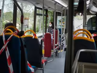 Una mujer protegida con mascarilla viaja en un autobús urbano - Eduardo Sanz - Europa Press