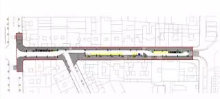 Fase 5. La duración será de tres semanas. La ejecución de la calzada será de dos semanas; se colocará el mobiliario urbano y la señalización señalización. El acceso peatonal será ya sin restricciones. El acceso rodado quedará prohibido durante la demolición y ejecución de la calzada, que será de dos semanas, que se prolongará durante dos semanas. La última semana se podrá acceder al garaje y a las fincas.