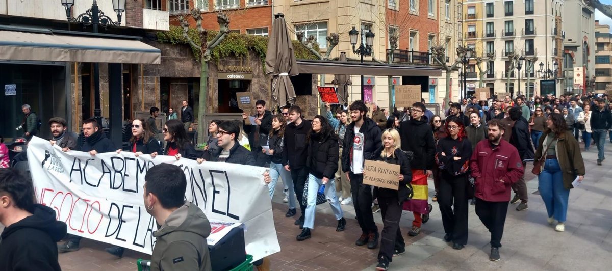Una multitudinaria manifestación ha secundado este sábado la llamada del Sindicato de Vivienda de La Rioja para exigir "acabar" con este negocio y "decir 'basta' a la especulación, a los desahucios y a que los gobiernos estén al servicio de los grandes tenedores y de los fondos buitre". Además, en el caso de La Rioja solicitan también "limitar los pisos turísticos".