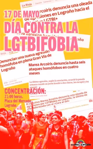 El 17 de mayo, Día de la LGTBIfobia, Marea Arco Iris tiene prevista una concentración, a las 21:00 horas en la Plaza del Mercado, para denuncias los ya siete ataques contabilizados por este colectivo este año.