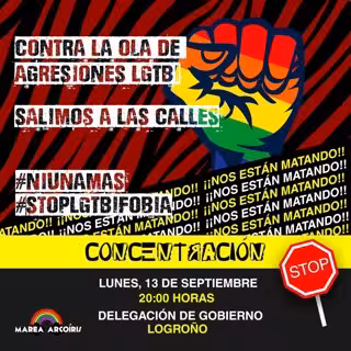 Tras estos datos alarmantes, desde Marea Arcoiris "nos vemos en la obligación de salir a la calle y por ello hemos convocado una concentración frente a la Delegación del Gobierno en Logroño el próximo lunes a las 20,00 horas".