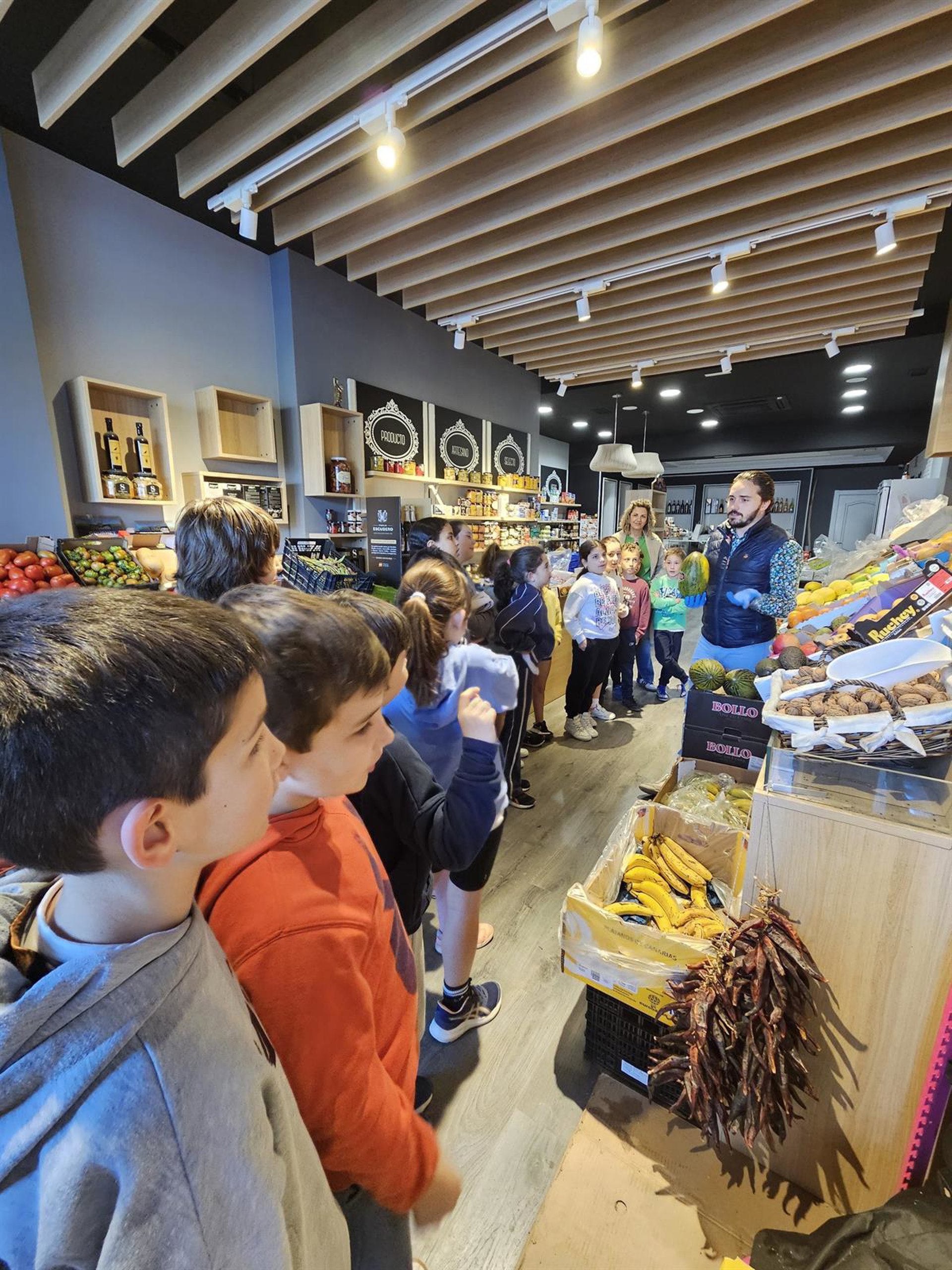 También Reyes Zapata ha pasado por la tienda 'El Mercado de Miguel', en la que los escolares de 3º de Educación Primaria del colegio Aurelio Prudencio han escuchado atentamente las explicaciones de Miguel García sobre las propiedades y peculiaridades de las verduras y frutas y la importancia de una dieta equilibrada y rica en estos alimentos.