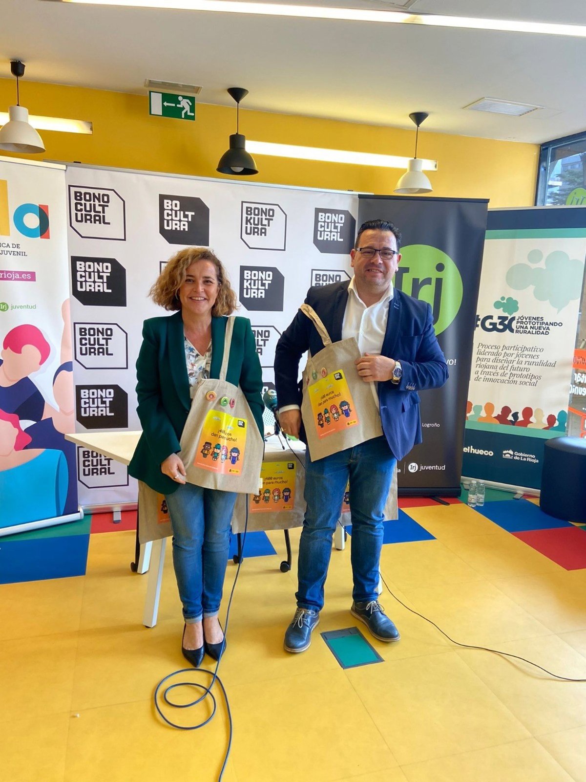 La delegada del Gobierno en La Rioja, Beatriz Arraiz Nalda, y el director general del Instituto Riojano Juventud (IRJ), Paco Rivero, han presentado el balance y novedades del Bono Cultural Joven en La Rioja.